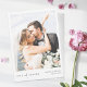 This simply chic wedding photo thank you card template features an elegant, minimalist, modern design. The front features your first names and date under your favourite photo and a 'LOVE and THANKS' message in black conveyed with a striking blend of two distinct fonts, with 'and' in a light, flowing script between the other two words, which are in upper case with a bold, crisp formal look. The 'LOVE and THANKS' part of the design is in black and can't be altered. When you edit the front to show your own names and date, you might change the colour of that text to a certain colour or something else instead of the default slightly softened black, according to your taste. On the back we've chosen a background hue that isn't quite white, it's a very light grey that's mostly white called White Smoke. You can change this by picking another colour in the editing tools if you'd like. Or you might choose to make the background on back transparent to let the colour of the paper simply serve as the base tone. The default text colour on the back is the same slightly softened black that we used for the names and date text on the front, but you can change this if you prefer another colour. We've put some sample text on the back for you to replace with your own message as you see fit, but please don't feel restricted by this. If you prefer delete our sample text entirely and keep the back totally blank so that you can write a handwritten note on each card instead, you can do that. Or you might want to replace our text with your own message of gratitude and your own closing and then hand sign your names when you receive the cards. In any case, please do remember to remove all of the sample/placeholder text on both sides as well as our sample photo! We've chosen matte rather than semi-gloss as the default paper choice, as it is well suited to writing your own message on and won't smudge. You can of course change this to semi-gloss, or you might consider upgrading to something with a texture such as zazzle's 'Laid' or 'Felt White', which can add a feeling of warmth and depth. We hope you'll enjoy experimenting with various aspects of this stylish modern photo wedding thank you card's appearance and make it uniquely yours with the intuitive design tools, your photo and your inspiration! And please check our wedding thank you card collection for more elegant modern designs, including this design in a horizontal format!
