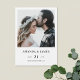 This simply chic enclosure card is a great way to add a fun, personal touch to your wedding announcements. Please note that this is an enclosure card, though we've adapted the front from one of one of our most popular save the date cards. The default size is 3.5" x 2.5". Most save the date cards these days include a photo, but as a rule, wedding invitations do not. So if you didn't send save the date cards but would like to share your favourite photo, tucking this small card in with your wedding invitation is a great way to do that. And if you're sending a save the date card that doesn't include a photo, you might want to embellish it with this! This enclosure card also offers the option of including a simple message in the back. As an example, we've added 'We hope you can join us!' in a font that has a warm, personal flair. But this is just an example-you can delete this message and leave the back blank, or replace it with something that suits your style. You can also change the font. There are also handwriting fonts in zazzle's selection, among other various looks. You might also choose to delete our sample text, leave the back blank, and write a few words by hand on each enclosure card when you get your cards. The background is set as transparent, so that the colour of your paper will simply serve as the base tone. But you can edit this and choose a specific background colour, to match your theme, etc. We also offer another simply chic photo enclosure card in a horizontal format, so please browse our shop!