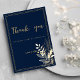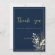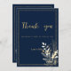 Simple chic navy blue gold floral Thank You Invitation