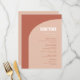 Wedding menu. Minimalist yet striking: adopt this slightly retro elegant typographic design for your wedding stationery, with a modern arch design and terracotta & burnt orange colours. Fully customisable text, colours and backgrounds.