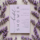 A beautiful bridal shower invitation that encapsulates the essence of modern elegance. Against a soft purple backdrop, bold and sophisticated black calligraphy takes centre stage, weaving the details of this special celebration with graceful strokes and contemporary flair. Customize with ease.