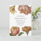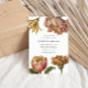 This chic wedding invitation features large vintage style blush and golden yellow floral elements and classic typography with a simple white back of the card. This elegant botanical invitation is a beautiful way to let guests know of your upcoming wedding celebration.