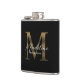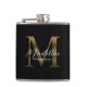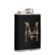 Simple Chic Script Metallic Black Gold Monogram Hip Flask
