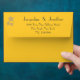 Simple chic script name address warm yellow invite envelope. Created by artist RjFxx *All rights reserved. #PersonalizedWeddingInvitationEnvelope #ZazzleMade