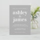 Simple and chic wedding invitation features white stylish, elegant and modern typography on a light grey background. Simply add your wedding details. Exclusively designed for you by Happy Dolphin Studio. If you need any help or matching products please contact us at happydolphinstudio@outlook.com. We're happy to help you make your wedding the most beautiful day!
