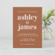 Simple and chic wedding invitation features white stylish, elegant and modern typography on a terracotta background. Simply add your wedding details. Exclusively designed for you by Happy Dolphin Studio. If you need any help or matching products please contact us at happydolphinstudio@outlook.com. We're happy to help you make your wedding the most beautiful day!