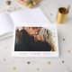 This wedding guest book features a simply chic modern minimalist design. It features your favourite photo on the front with 'WEDDING GUEST BOOK' above it and your names, date and wedding location below it. You can edit the WEDDING GUEST BOOK text above the photo to show a different message, or delete it without replacing it with anything, for a simpler look. While we've used all lower case for the sample names and location below the photo, you can of course use standard capitalisation and use standard capitalisation when you edit to show your own names, date and location. You might also choose to change the font or colour of some text. The default text colour on the front and the spine is an elegant shade of burgundy. We've set the default background colour as transparent on the front, back and spine to let the basic colour of the guest book's cover simply serve as the base. But you can change this and choose a colour that suits your style. In that case you might well choose to edit to show that colour over the entire surface, both front and back and the spine. We have left the back blank. Please don't forget to edit the text on the book's spine! It can be easy to overlook this. We've made the sample names and date there the same shade of burgundy that we used on the front, but you can change this colour and of course you can change the nature of those details entirely-you might prefer to change the spine text to something like 'OUR WEDDING GUEST BOOK' or "BEST DAY EVER", etc. in a colour of your choice, for example. Use the intuitive design tools, your favourite photo and your inspiration to make this simply stylish modern wedding guest book uniquely yours!