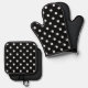 Simple Chic White Polkadots Pattern On Black Oven Mitt & Pot Holder Set