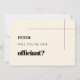 Will you be our officiant proposal card. Minimalist yet striking: adopt this slightly retro typographic design for your wedding stationery, with an elegant cream colour. Fully customisable text, colours and backgrounds.