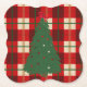 Simple Christmas Plaid Red And Green Pine Tree Paper Coaster