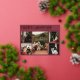 Simple Christmas Red Five Photo Gold Foil Holiday Postcard