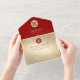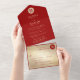 Minimalist Red / Faux Gold Foil Round Circle Double Happiness On A Solid Red Colour / Faux Gold Foil Image Background, Chinese Wedding Invite + RSVP Card, All-in-One Invitation.
