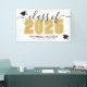 This classic yet modern graduation party banner is the perfect way to celebrate the Class of 2025. The design features an oversized "Class of 2025" in a bold yellow gold hue, accented with black and white typography and elegant grey script. Two graduation cap icons add a festive touch, while space below allows for the graduate’s name and school, making it a personalised centerpiece for the celebration.