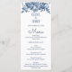 For the special wedding dinner! Classic blue and white watercolor floral and butterfly artwork decorates the top of this menu card. The reverse is white with two little blue butterflies. The menu items are easy to customise using the text templates and edit menu. Elegant yet simple & modern. Whimsical original artwork & design by Tuzi Williams.