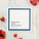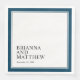 A classic modern design for weddings or engagements, this paper napkin has a double frame in navy blue with a white background. The bride and groom's names and wedding date are shown in the lower left corner of the design. The text is left justified for a contemporary effect. Personalise the text with your names and date. Note: these paper napkins are available in 3 sizes: dinner size (shown here), luncheon size and cocktail size.