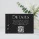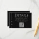 Simple, elegant and tasteful, this classic black wedding Details enclosure card features a thin line border along the left edge with the bride and groom's monogram initial. A timeless elegant serif font conveys your information beautifully. The popular black background with off-white text adds to the clean simplicity of this design. A QR code is included in the template to personalise with your wedding website URL. Guests can scan the QR code or visit the URL shown to view information surrounding your wedding as well as RSVP online quickly and easily.