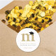 Simple Classic Gold Monogram Letter 'm' With Modern Graduation Cap On A Plain White Background, Grad Party Favour Sticker / Envelope Seal.
