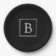 Simple Classic Monogram | Black w/ White Text Paper Plate