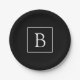 Simple Classic Monogram | Black w/ White Text Paper Plate