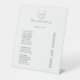 Classic black and white price list pedestal sign featuring a simple layout with your monogram inside of a wreath / crest. Below is your name in an elegant script / calligraphy along with your price list / service menu. A feminine and girly design for any type of business.