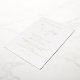 Classic white Wedding Invitation with "the wedding of" and "reception to follow" in an elegant delicate script. All text is printed in real gold foil. A simple layout without any graphics makes this a timeless and luxury design, perfect for a formal wedding.