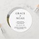 Invite family and friends to a simply stylish wedding celebration with elegant and unique custom photo round invitations. All wording on this template is simple to personalise and colours can be changed using the Zazzle design tool. The modern minimalist black and white design features one photo of the engaged couple and elegant classic typography. This chic contemporary invitation adds a unique touch an upcoming special day celebration. Congratulations to the bride and groom!