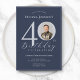 Simple Classy Navy Blue Silver Photo 40th Birthday Invitation. Honour a remarkable milestone with this simple and classy design featuring a navy blue background, soft silver typography, and a timeless photo-centred design. Perfect for elegant adult celebrations, this refined layout suits formal gatherings, family events, and meaningful milestone parties. Easily customise the photo, name, and event details to create a polished keepsake invitation.