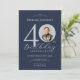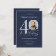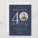 Simple Classy Navy Blue Silver Photo 40th Birthday Invitation
