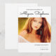 Simple and classy white graduation announcement design featuring a single large photo on front with your name on top and school and class on bottom. Great for high school or college graduations.