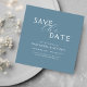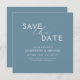 Simple Clean Dusty Blue & White Script Wedding Save The Date