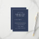 Minimalist Simple + Clean Contemporary Wedding RSVP Invitation Inserts, featuring creamy ecru white Inking on a dark midnight navy blue background. All text is customisable