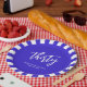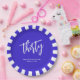 It's time to party to celebrate a 30th birthday bash with this modern and bold birthday party plate. This simple stylish design has a vibrant cobalt blue background with white handwritten script accents blended with a modern sans serif font. The plate is bordered in a coordinating cobalt blue and white stripes pattern. Personalise the text template with your guest of honour's name and date. These plates are available in 9-inch diameter and 7-inch diameter. Shown here in the 9-inch style.
