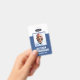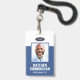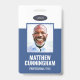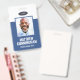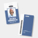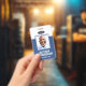 A modern and simple badge that does not distract from the important details. Easy to read from afar. Add a custom logo and company details. Add the employee's name, photo, and professional title. The bar of colour can be modified to match the company's official colours. At the back, add more information such as return address and the employee's ID number. Perfect for oval shaped logos.