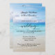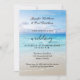 A wedding invitation featuring a modern painting of a beach in bright colours. On the back is a QR code template for your website details and to RSVP.