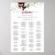 This simple colourful classic alphabetical seating chart is perfect for a rustic wedding. The design features burgundy, pink, blush and white watercolor flowers with green leaves and red berries neatly bunched into attractive bouquets.