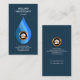 A modern, simple and stunning design. A dark blue cover accentuated by a four tone blue coloured water drop. At the top are your prestigious name and job title. The faux gold plumbing logo sits inside the creative water drop. At the base are the contact details.