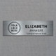 Simple name tag with your company or organisation's logo against a brushed silver faux metallic background. Add a name, title and department or other text in modern typography.
