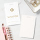 Keep track of visitors and ensure the return of your badges with this simple visitor badge featuring a clean solid white background, golden typography and a premade gold diamond logo that can customised with your logo. The simple design is professional and perfect for any business or event.