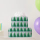 Handpainted, watercolor conifer Christmas-trees-in-waiting march across a frosty background.