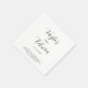 Contemporary black and white wedding napkins featuring a simple and minimalist layout with your names in an elegant calligraphy script and your wedding date and personal message below. A modern design that goes with any style of wedding.