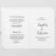 Contemporary black and white folded wedding program featuring a simple and minimalist layout with your names in an elegant calligraphy script and your wedding details below. A modern design that goes with any style of wedding. PLEASE NOTE: These arrive flat and unfolded.