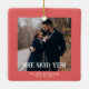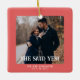 Simple Coral First Christmas Engaged Custom Photo Ceramic Ornament
