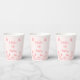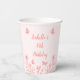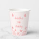 Unique simple wedding paper cup featuring romantic and elegant coral pink flowers and butterflies on light pink background
