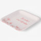 Unique simple wedding paper plate featuring romantic and elegant coral pink flowers and butterflies on light pink background
