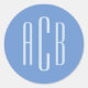 Simple Cornflower Blue Three Letter Monogram Classic Round Sticker