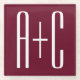 Simple Couples Initials | White & Burgundy Glass Coaster