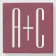 Simple Couples Initials | White & Burgundy Stone Coaster