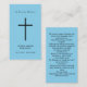 This simple memorial prayer card template with elegant white script on a serene sky blue background can be given as a keepsake at a Celebration of Life or funeral service or sent as a special tribute to those who were unable to attend. Design features a simple gold cross with complimentary gold script typography on a classic navy blue background. Personalise this card with the name of your loved one, dates and your choice of prayer or poem on the back. Easy to customise. Our heartfelt condolences during this difficult time.
