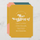 This simple, stylish wedding invitation features retro styled photography on the front over a custom colour background (shown in bright golden yellow). The back contains a modern, hand drawn geometric design in dark teal blue, coral orange, peach, golden yellow, and light lilac pink / purple. The back also contains a QR code template for directing guests to your wedding website. Simply Customise the text or delete it, if not desired.