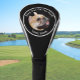 This custom dog photo personalised golf head cover feature an editable dog photo with a funny pun message for a golf gift for him. If he likes golf, jokes, and dogs, he deserves this punny driver cover.